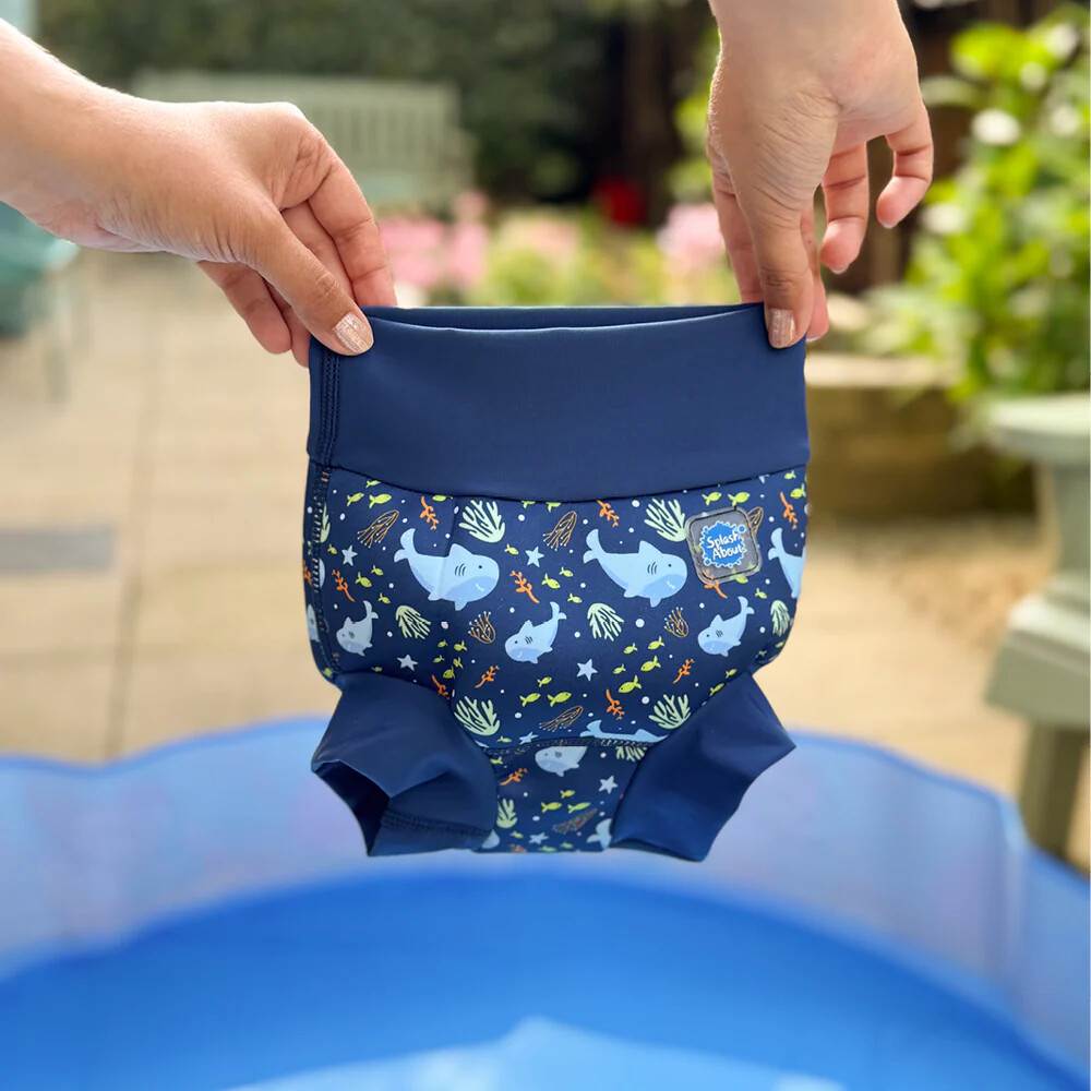 Happy Nappy sú inovatívne, opakovane použiteľné plávacie plienky, ktoré spoľahlivo bránia pred únikom fekálií do vody. Sú tvarované, aby zodpovedali detskému zadočku, zatiaľ čo špeciálny pás a stehná tesne priliehajú k telu dieťatka a vytvárajú tesnenie, ktoré zabraňuje úniku fekálií. Noste s našimi Nappy Wrap a vložkami na plienky pre jednoduchú výmenu a čistenie.