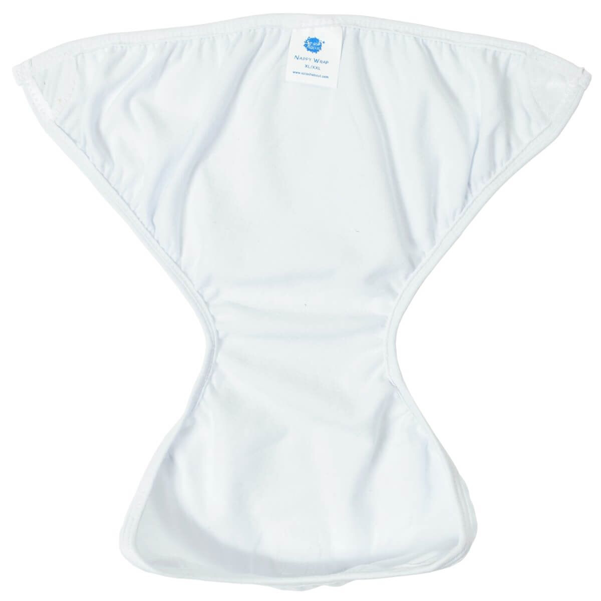 Nappy Wrap - nastaviteľná veľkosť pod plávacie plienky, ktoré sa dajú jednoducho upraviť na malú, strednú a veľkú veľkosť stlačením gombíka, aby rástli s vaším dieťaťom. Nastaviteľná veľkosť pod Nappy je navrhnutá tak, aby sa používala ako súčasť dvojvrstvového systému Happy Nappy na lekcie plávania a bola navrhnutá tak, aby sa bezpečne zmestila pod plienku Happy Nappy pre extra ochranu proti pretečeniu v bazéne. Dá sa nosiť aj samostatne ako alternatíva k jednorazovým plaveckým plienkam.