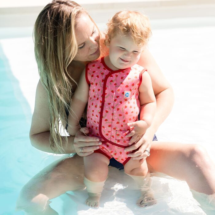 Udržuje dieťa vo vode v teple a zabraňuje šokovým teplotným prechodom zo sucha do vody a naopak, tiež prechody z bazéna do šatne. Spevní telíčko a rodičia sú si v uchopení istejší.