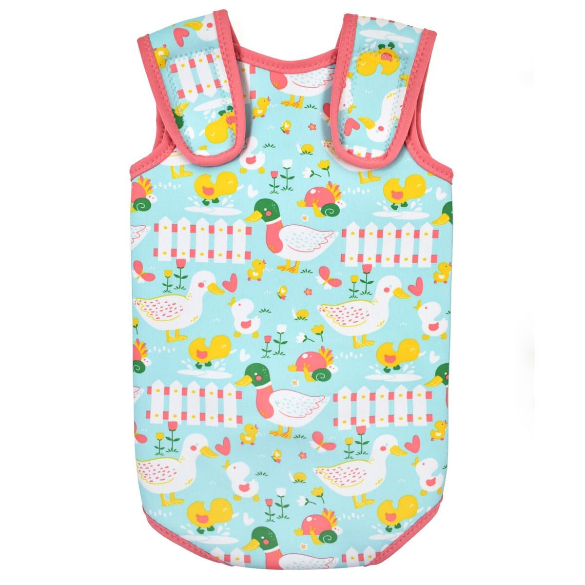 Baby neoprén Wrap je vyrobený z 3mm hebkého a vláčneho neoprénu s tvrdou nylonovou vrstvou po oboch stranách. Zapínanie je pomocou suchého zipsu vo všetkých dôležitých partiách. Popruhy na suchý zips cez ramená zaisťujú úplnú nastaviteľnosť a priestor pre rast.