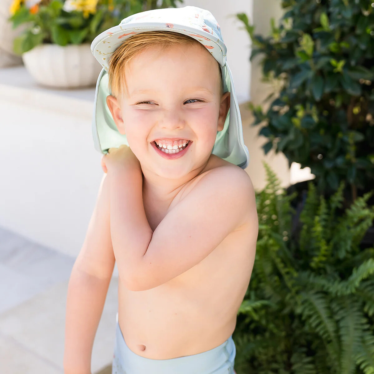 Chráňte malé hlavičky pred slnkom v týchto ľahkých a rýchlo schnúcich legionárkach. Sú navrhnuté aby sa nosili vo vode i mimo nej, sú elastické, aby sedeli na hlave bez kĺzania. Šiltovka pomáha chrániť oči pred slnkom, zatiaľ čo tkanina vzadu je dlhá, aby zakryla zadnú časť krku, čím udržuje deti v chlade a chránené pred slnkom.